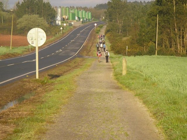 Salí alrededor de la ocho del Albergue, entonces me dirigí hacia la calle principal, situada al lado del Albergue; fui hacia la zona de los pórticos y entré en uno de los bares, donde tomé un zumo de naranja, un bollo y un café con leche, comida suficiente para despejarme a esas horas. El bar estaba lleno de peregrinos, pero conseguí una mesa. A partir de hoy prácticamente fui siempre en compañía de uno u otro, pues a partir de aquí éramos muchos peregrinos los que seguiríamos hacia Santiago, que cada vez estaba más cerca.