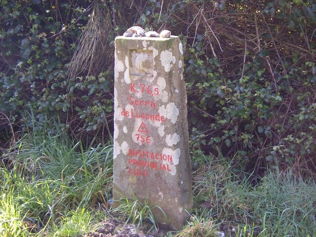 Ahora el Camino abandona la carretera y continúa por un camino de tierra, rodeado de árboles y otras plantas diversas, hasta el pueblo de Castromaior. Este pueblo recibe su nombre de un gran Castro que se eleva al noroeste del poblado. Luego se prosigue por un paisaje similar, poblado de robles, pinos y retamas, que es rigurosamente ondulado.Poco después se vuelve a salir a la carretera, por la que se sigue aproximadamente un kilómetro, a la par que se asciende suavemente hasta Hospital da Cruz. Ya nos encontramos cerca de Ventas de Narón. Después se inicia el ascenso de la Sierra de Ligonde que, al principio resulta algo dura, si bien poco a poco se sube tranquilamente; cuando se llega al kilómetro 76,5 del Camino hay un indicativo que indica que Serra de Ligonde se encuentra a 765 metros de altitud. Después la sierra desciende pasando por los poblados de Prebisa, Lameiros y Ligonde.