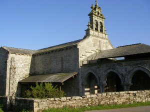 Pasado Portos, a la derecha hay un camino que conduce a un importante templo histórico-arqueológico, que es el Monasterio de VILAR DE DONAS. Nunca visité este pueblo las veces que he recorrido el Camino, pero en una ocasión lo visité como turista y tuve la suerte de que habían llegado allí otras personas, ,a las que atendió un guía, por lo que pude entrar dentro y ver la pequeña Iglesia actual, aunque las dependencias del Monasterio eran mayores. En este conjunto se ha efectuado una gran restauración, pero por el momento sólo se puede ver la pequeña Iglesia y el pórtico de la entrada, pues desde la época de la desamortización ya no residen monjes.