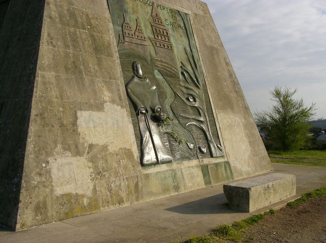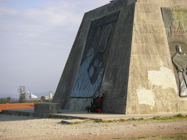 En el MONTE DEL GOZO paramos, como lo hacen todos los peregrinos; yo subía hacia arriba, desde donde pude ver una Torre de la Catedral, aunque cuesta algo visualizarla porque entre esa montaña y Santiago hay árboles que dificultan la visión.