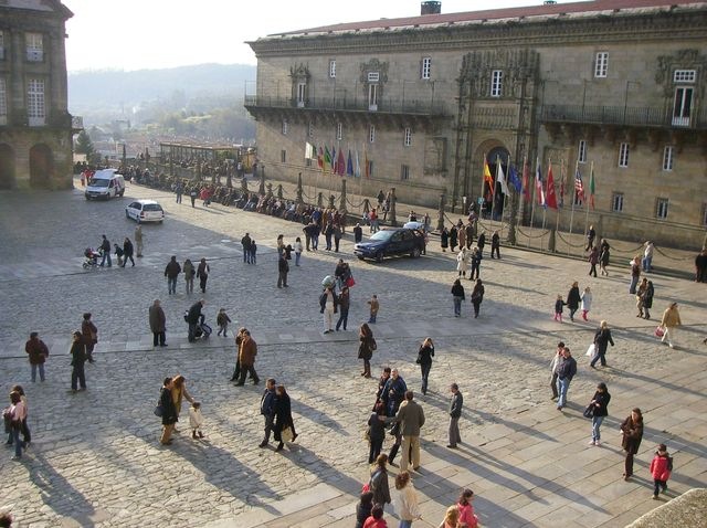 Atravesé la Catedral y salí por la puerta de la Plaza de las Platerias, aun no eran las 11, por lo que mi dirigí a la Oficina de Información del Peregrino; me sellaron la credencial y me dieran la Compostela. Después les pregunté donde podía pagar una misa por el alma de mi Padre, me indicaron que fuera a la Sacristía de la Catedral, pero como estábamos en Semana Santa, en la que no se celebran misa, no se celebraría hasta más tarde.