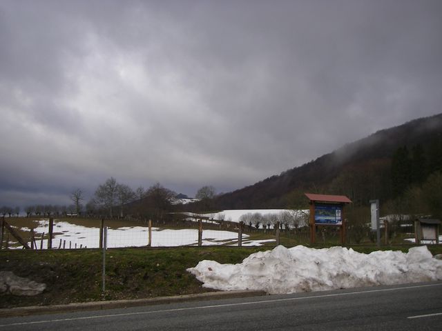 En febrero y marzo había nevado de forma abundante en Roncesvalles. La nieve alcanzó 4 metros de altura y cubría zonas del Monasterio. Ahora ya no nevaba, pero todavía se podía observar la nieve a finales de marzo.