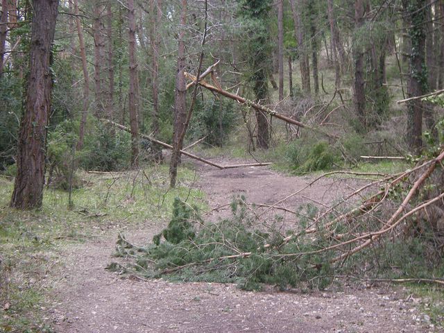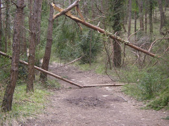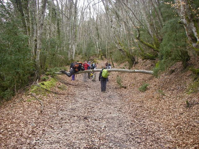 Monte del Erro. Debido a la nieve de este invierno muchos árboles se habían roto y atravesaban el Camino