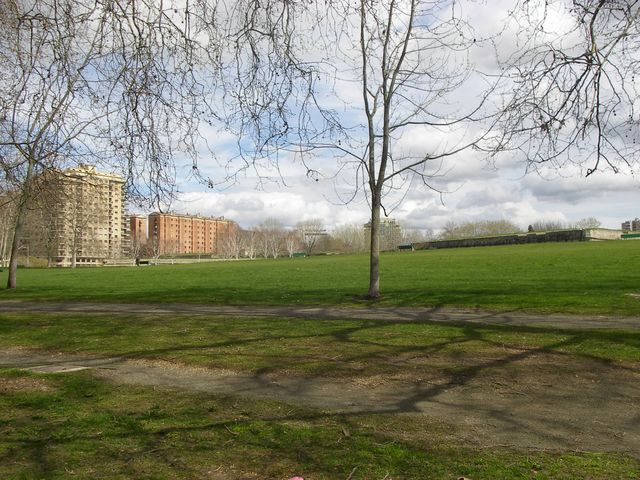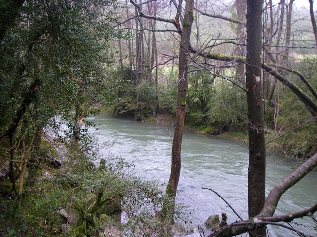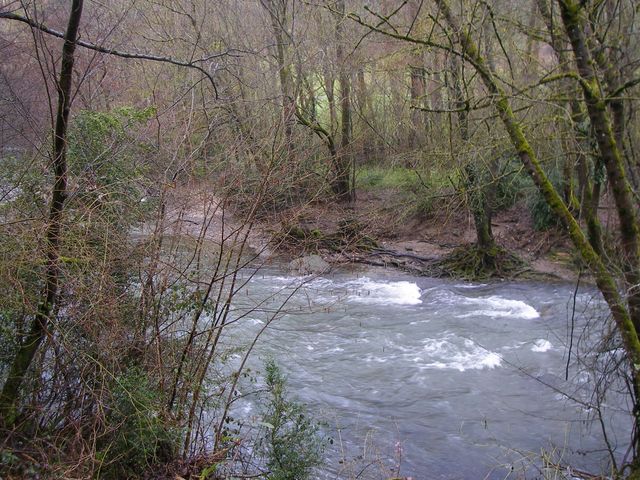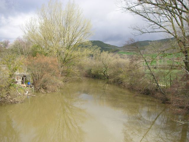 Camino a Trinidad de Arre. Aquí se puede observa el caudal del río Arga bastante elevado debido a las lluvias de esos días.