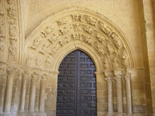 Carrión de los Condes. En la puerta de esta Iglesia si se observa detenidamente hay dos cabezas de toros o vacas en memoria de la Leyenda que existe en esta ciudad y de la cual hay también una pintura en la nave izquierda de la Igleisa, a la derecha del Altar Mayor.