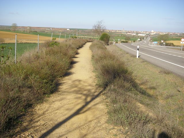 De Terradillos de los Templarios a Burgo Ranero. Al fondo la Ermita de Nuestra Señora del Puente